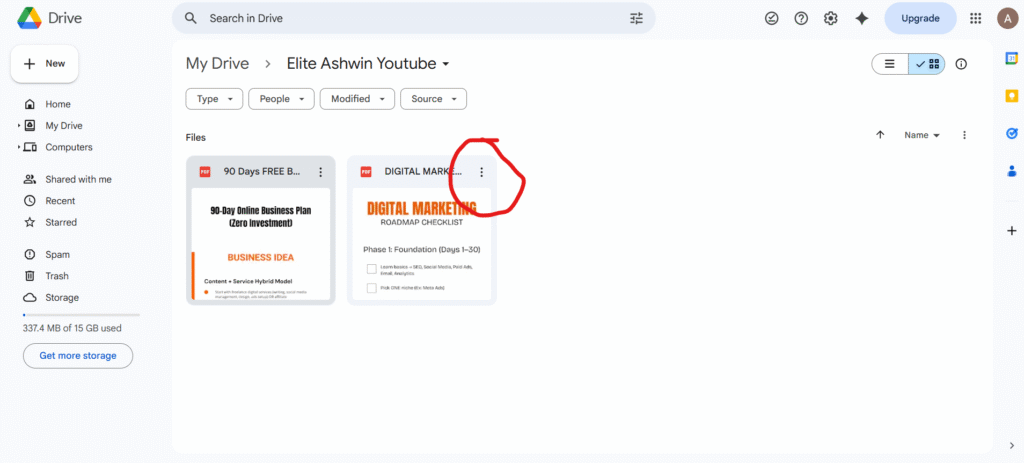 Click the 3 dots in the Corner of the google drive’s file